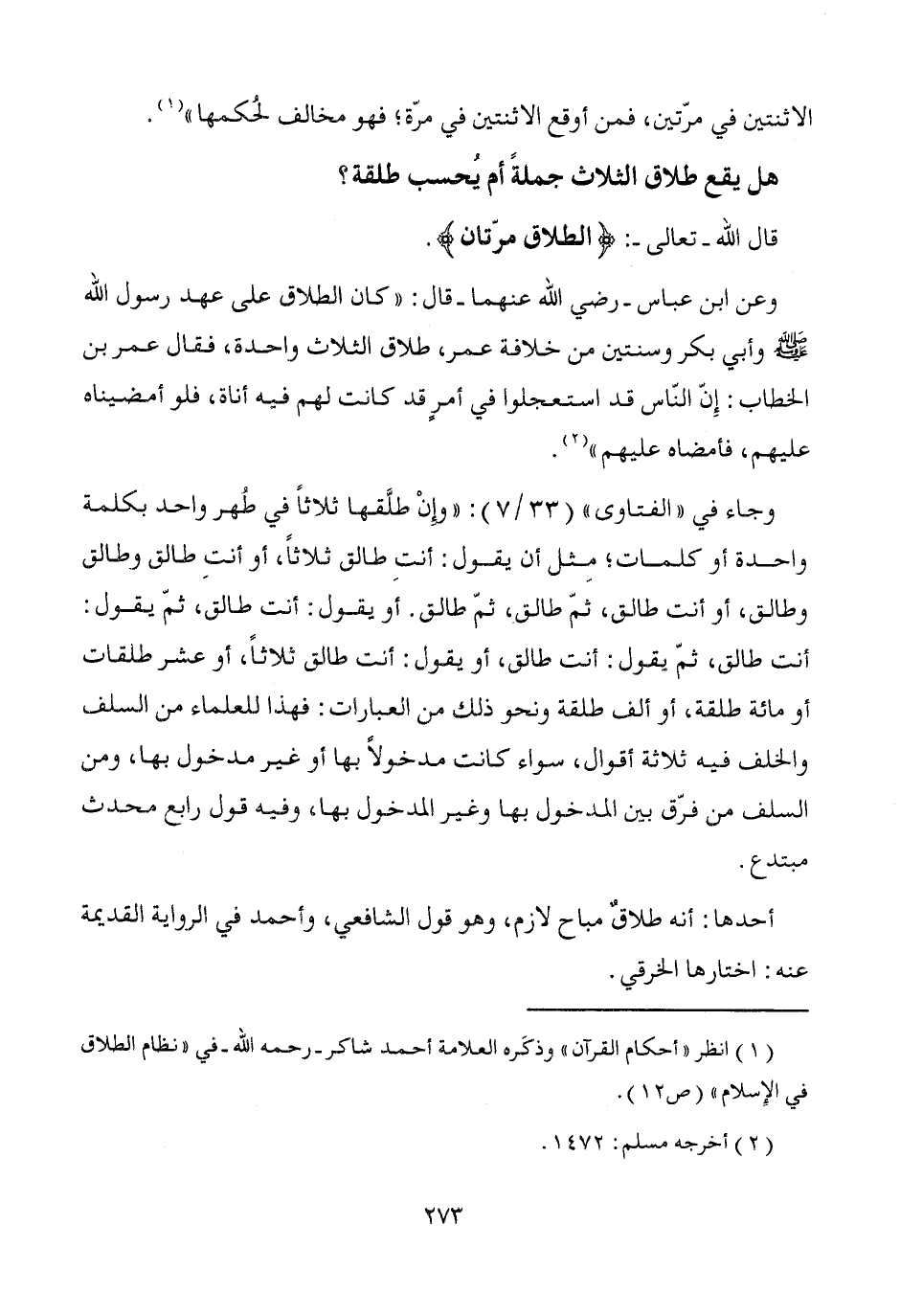 هل يقع طلاق الثلاث جملةً أم يُحسب طلقة؟