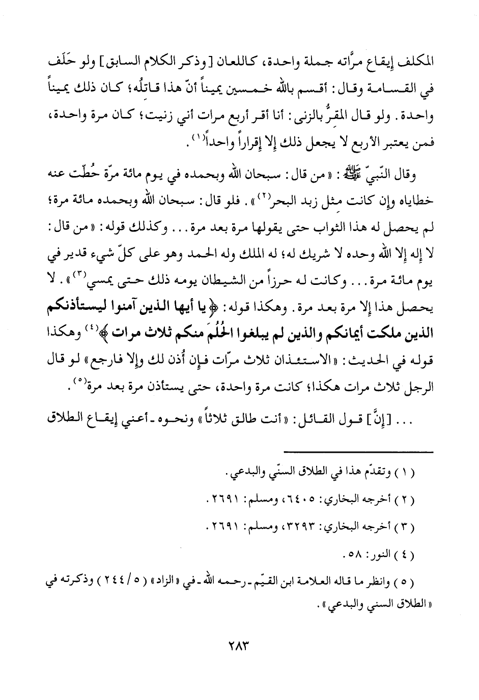(¬5) وانظر ما قاله العلامة ابن القيّم -رحمه الله- في "الزاد" (5/ 244) وذكرته في "الطلاق السني والبدعي".