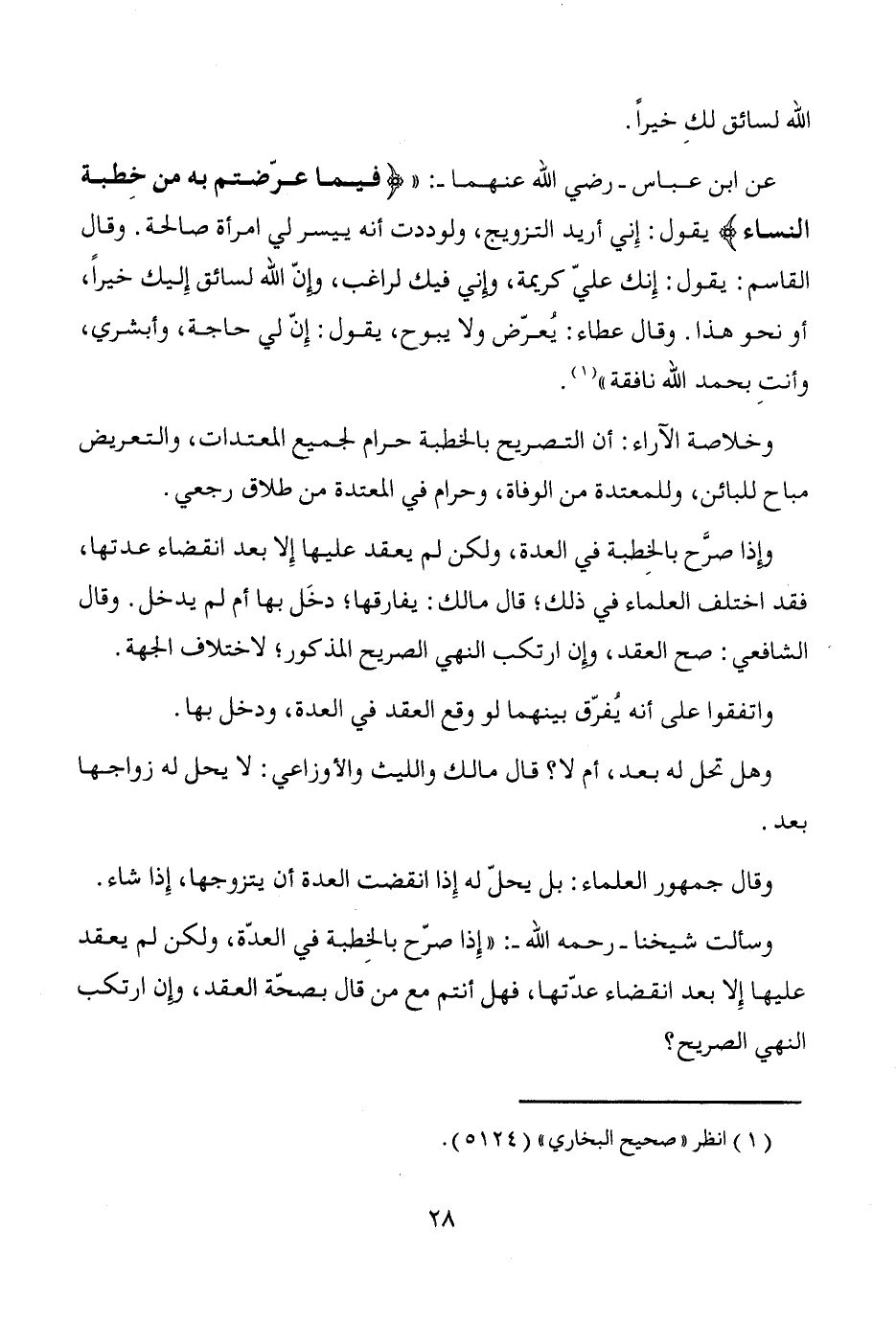 وسألت شيخنا -رحمه الله-: "إِذا صرّح بالخِطبة في العدّة، ولكن لم يعقد عليها إِلا بعد انقضاء عدّتها، فهل أنتم مع من قال بصحّة العقد، وإن ارتكب النهي الصريح؟