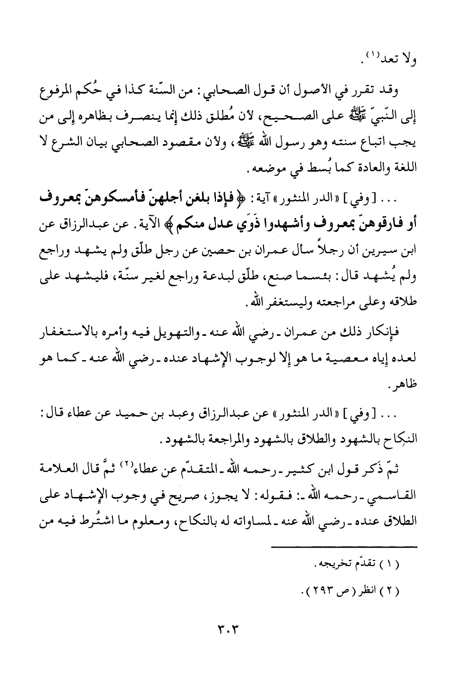 ... [وفي] "الدر المنثور" عن عبد الرزاق وعبد بن حميد عن عطاء قال: النكاح بالشهود والطلاق بالشهود والمراجعة بالشهود.