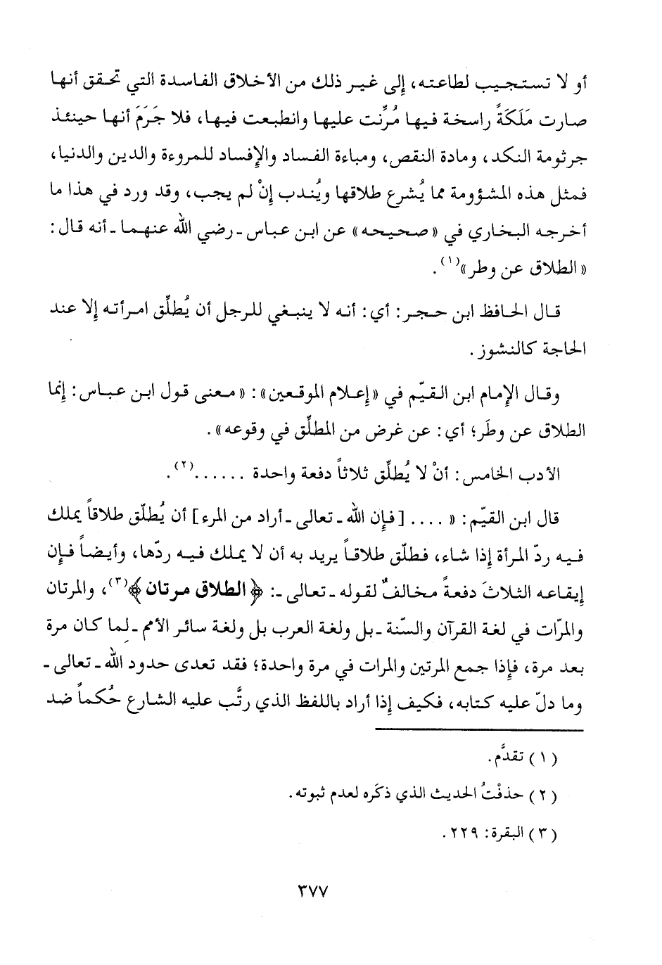 الأدب الخامس: أنْ لا يُطلِّق ثلاثاً دفعة واحدة ....... (¬2).
