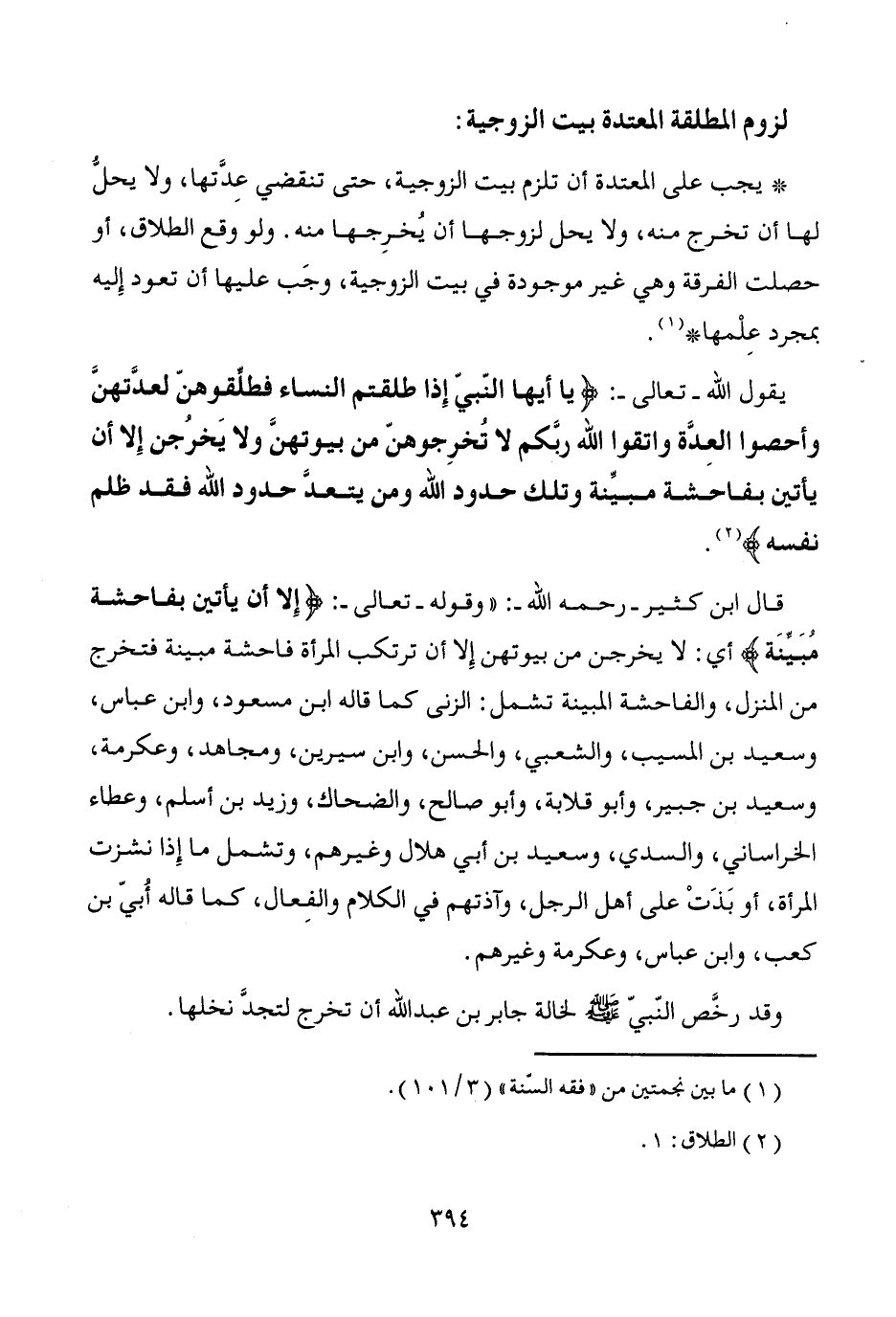 يقول الله -تعالى-: {يا أيها النّبيّ إِذا طلقتم النساء فطلِّقوهنّ لعدَّتهنَّ وأحصوا العِدَّة واتقوا الله ربَّكم لا تُخرِجوهنّ من بيوتهنَّ ولا يَخرُجن إلاَّ أن يأتين بفاحشة مبيِّنة وتلك حدود الله ومن يتعدَّ حدود الله فقد ظلم نفسه} (¬2).