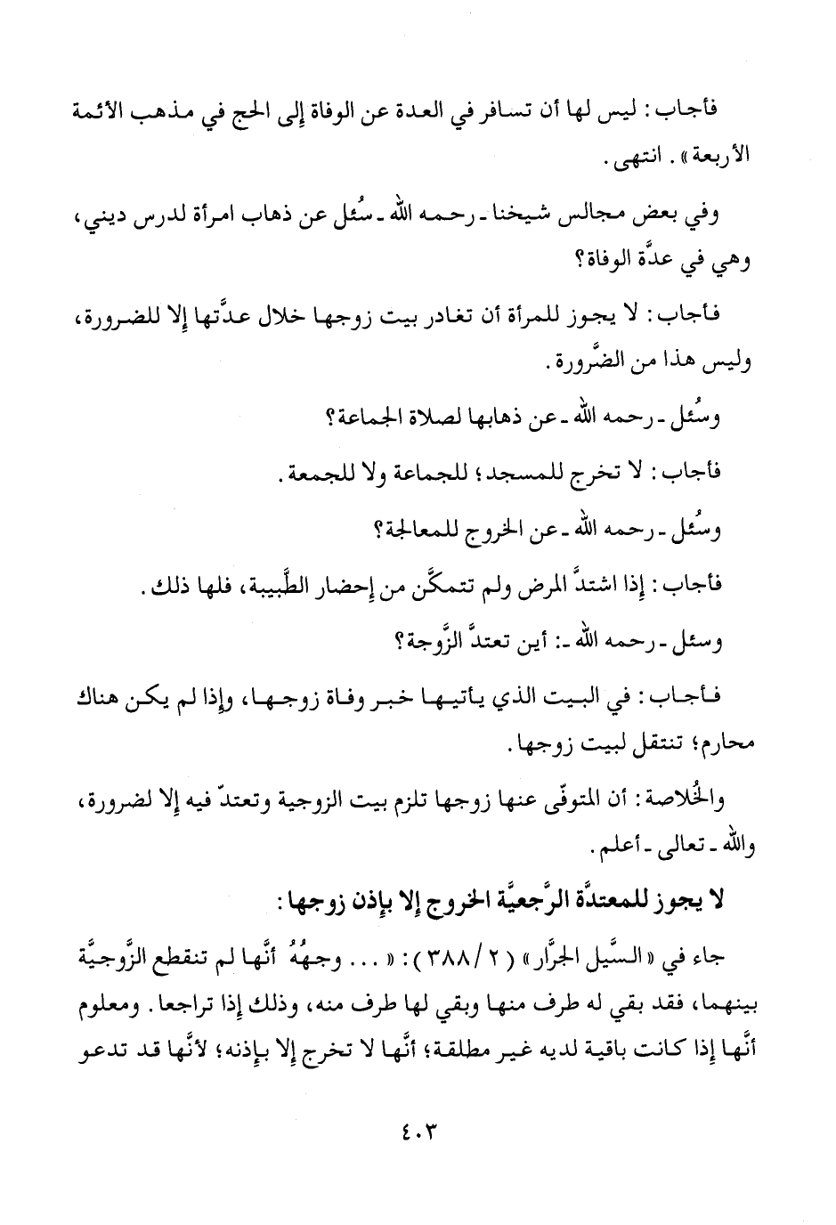 وفي بعض مجالس شيخنا -رحمه الله- سُئل عن ذهاب امرأة لدرس ديني، وهي في عدَّة الوفاة؟