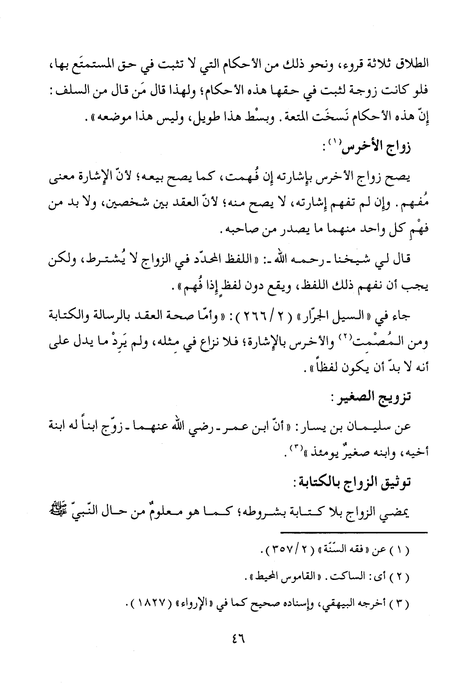 يصح زواج الأخرس بإِشارته إِن فُهمت، كما يصح بيعه؛ لأنّ الإِشارة معنى مُفهم. وإِن لم تفهم إِشارته، لا يصح منه؛ لأنّ العقد بين شخصين، ولا بد من فهْمِ كل واحد منهما ما يصدر من صاحبه.