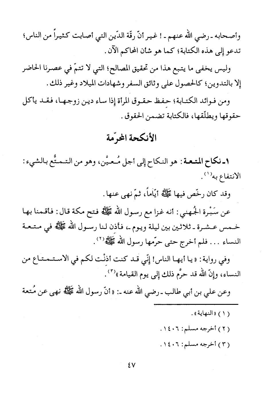 1 - نكاح المتعة: هو النكاح إِلى أجل مُعيَّن، وهو من التمتُّع بالشيء: الانتفاع به (¬1).