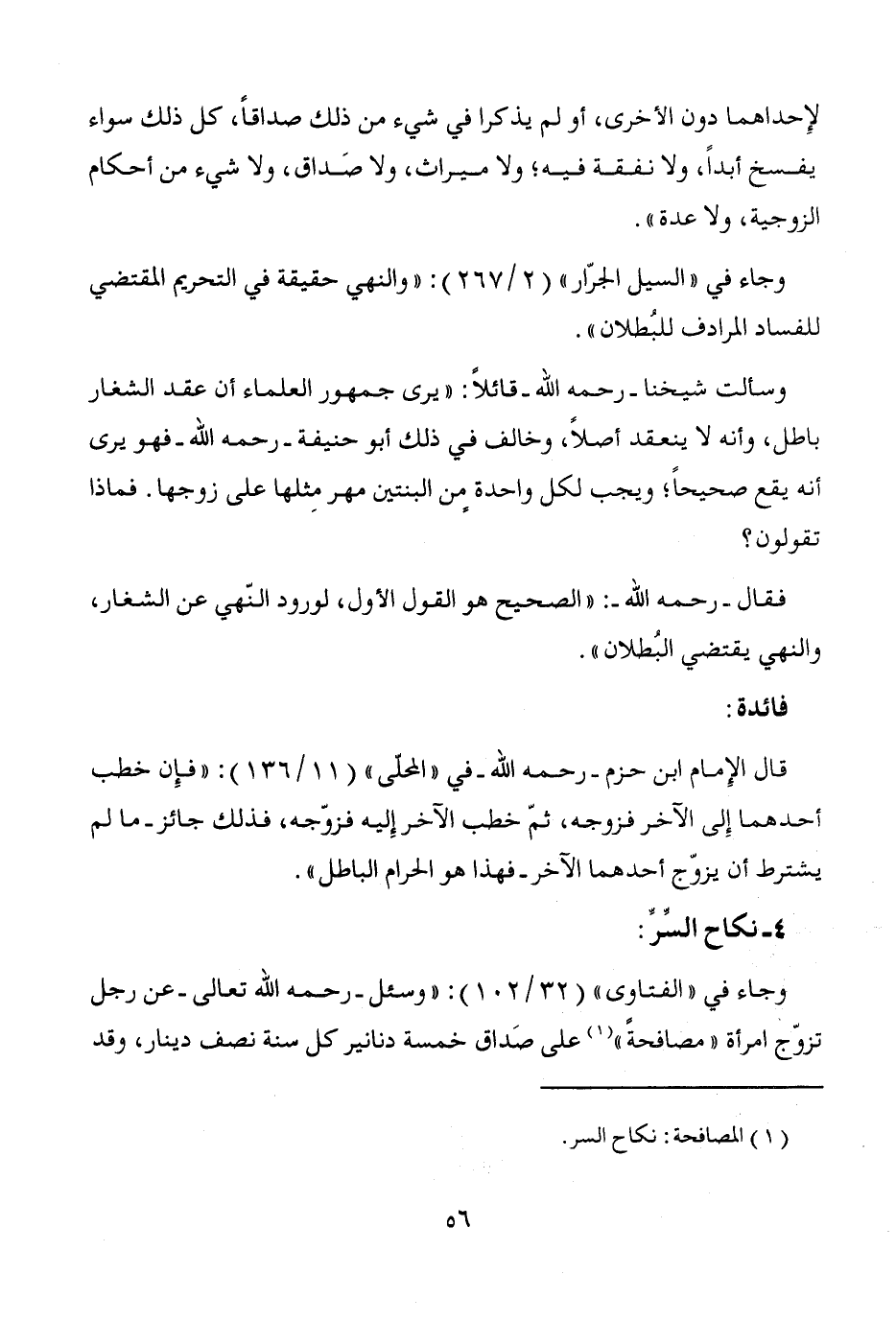 وجاء في "الفتاوى" (32/ 102): "وسئل -رحمه الله تعالى- عن رجل تزوّج امرأة "مصافحةً" (¬1) على صَداق خمسة دنانير كل سنة نصف دينار، وقد