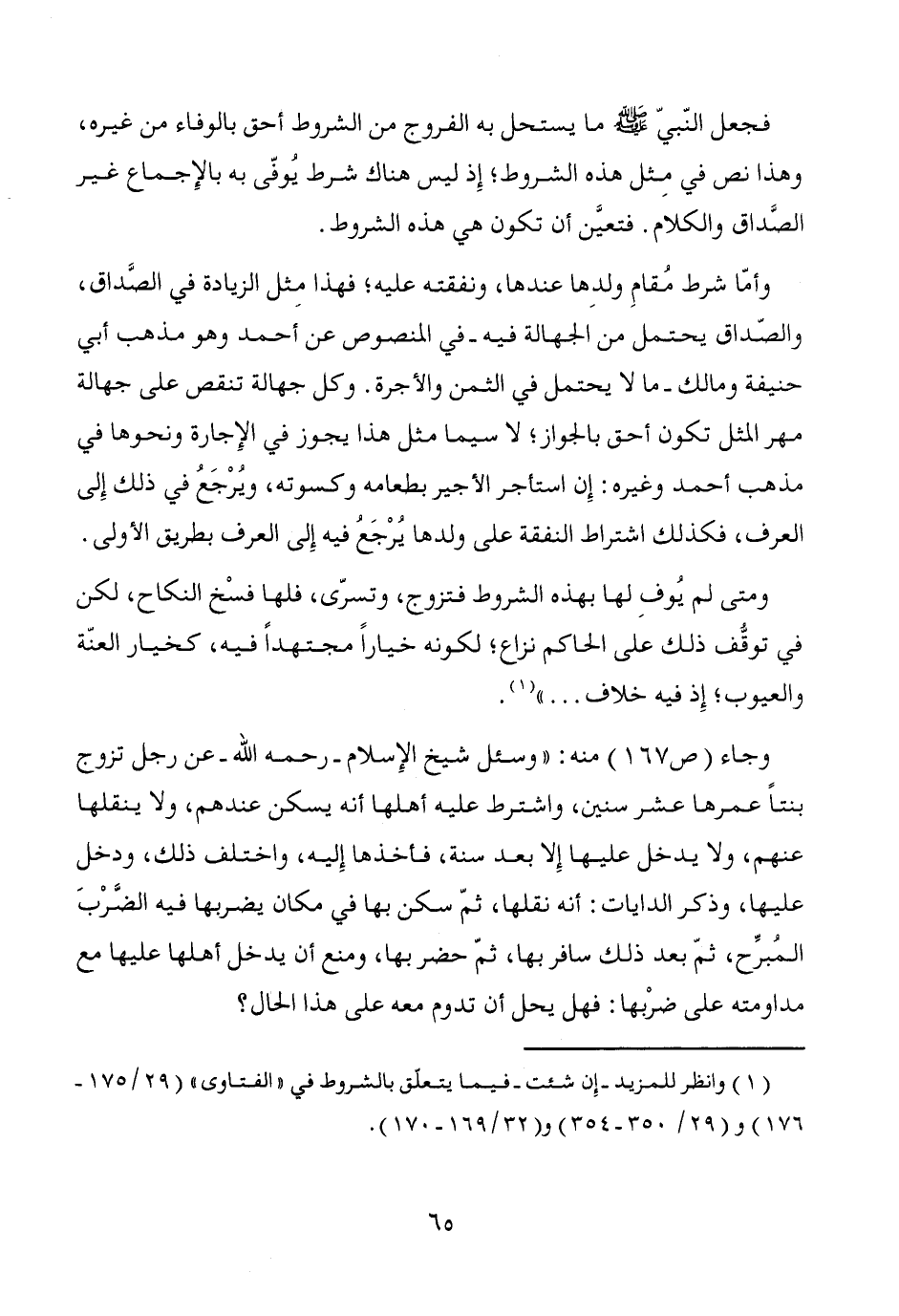 (¬1) وانظر للمزيد -إن شئت- فيما يتعلق بالشروط في "الفتاوى" (29/ 175 - 176) و (29/ 350 - 354) و (32/ 169 - 170).
