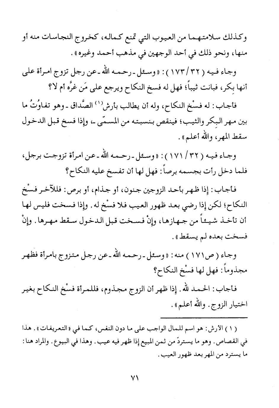(¬1) الأرش: هو اسم للمال الواجب على ما دون النفس، كما في "التعريفات". هذا في القصاص. وهو ما يستردّ من ثمن المبيع إذا ظهر فيه عيب. وهذا في البيوع. والمراد هنا: ما يسترد من المهر بعد ظهور العيب.