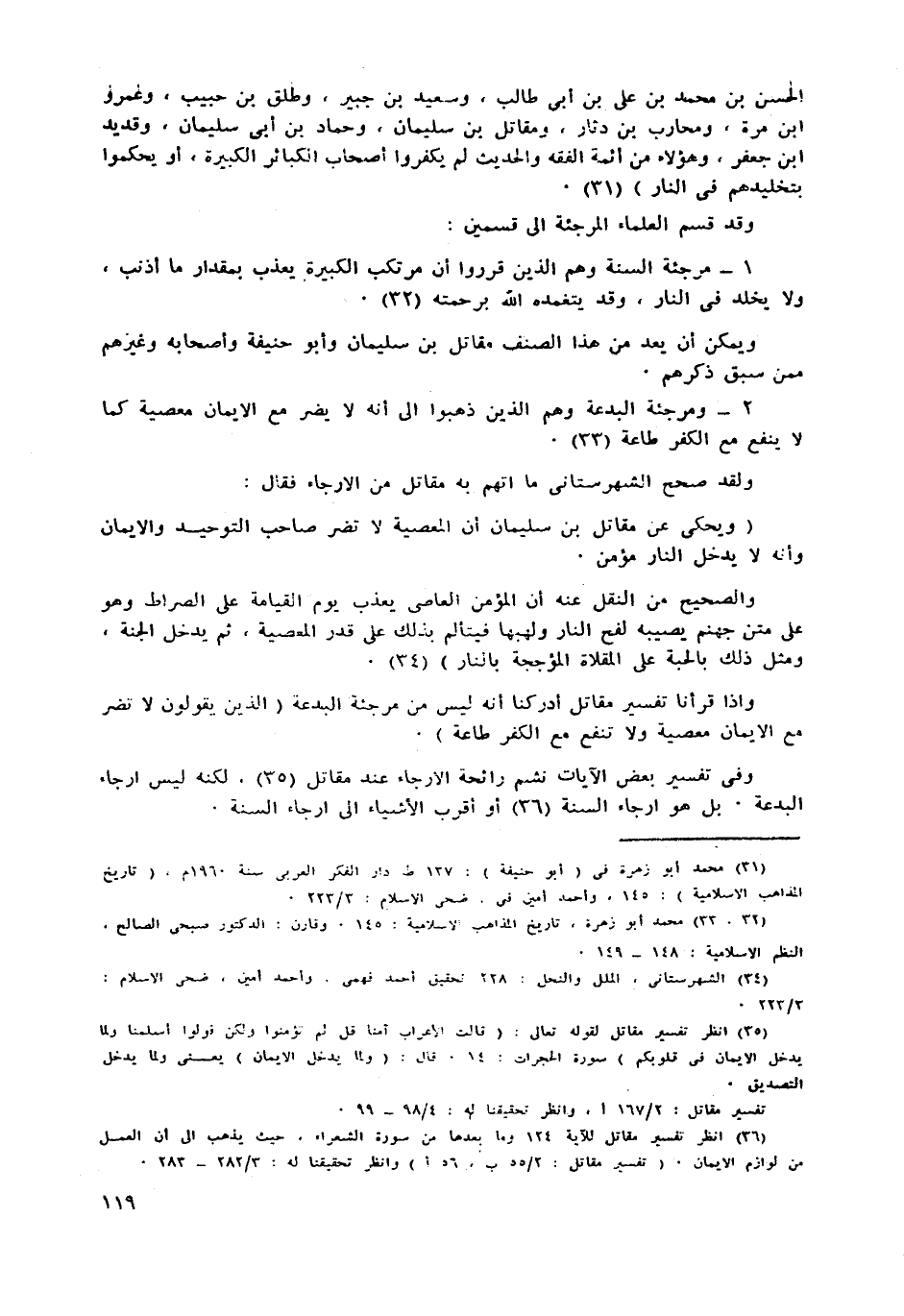 (31) محمد ابو زهرة فى (ابو حنيفة) : 137 ط دار الفكر العربي سنة 1960 م، (تاريخ المذاهب الاسلامية) : 145، واحمد أمين فى. ضحى الإسلام: 3/ 223.