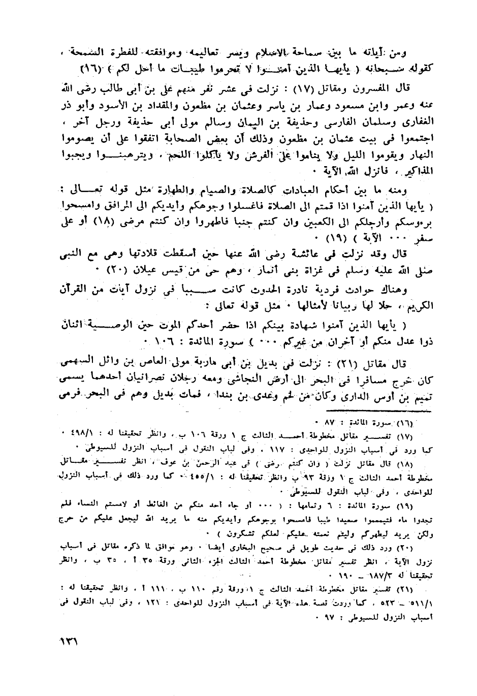 (20) ورد ذلك فى حديث طويل فى صحيح البخاري ايضا. وهو موافق لما ذكره مقاتل فى اسباب نزول الآية، انظر تفسير مقاتل مخطوطة احمد الثالث الجزء الثاني ورقة 35 ا، 35 ب، وانظر تحقيقنا له 3/ 187- 190.