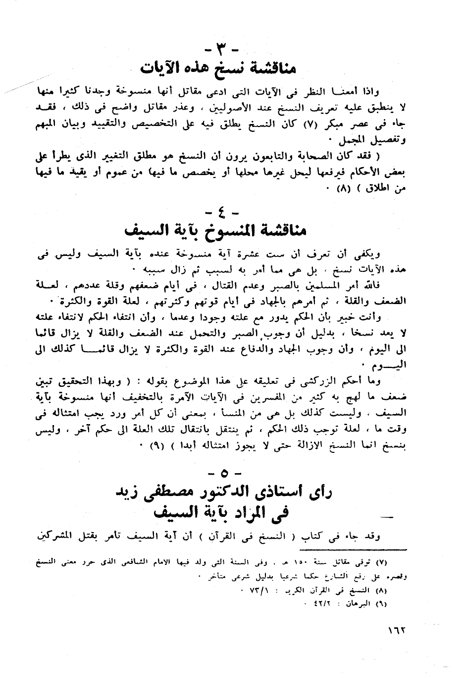 وقد جاء فى كتاب (النسخ فى القرآن) ان آية السيف تامر بقتل المشركين