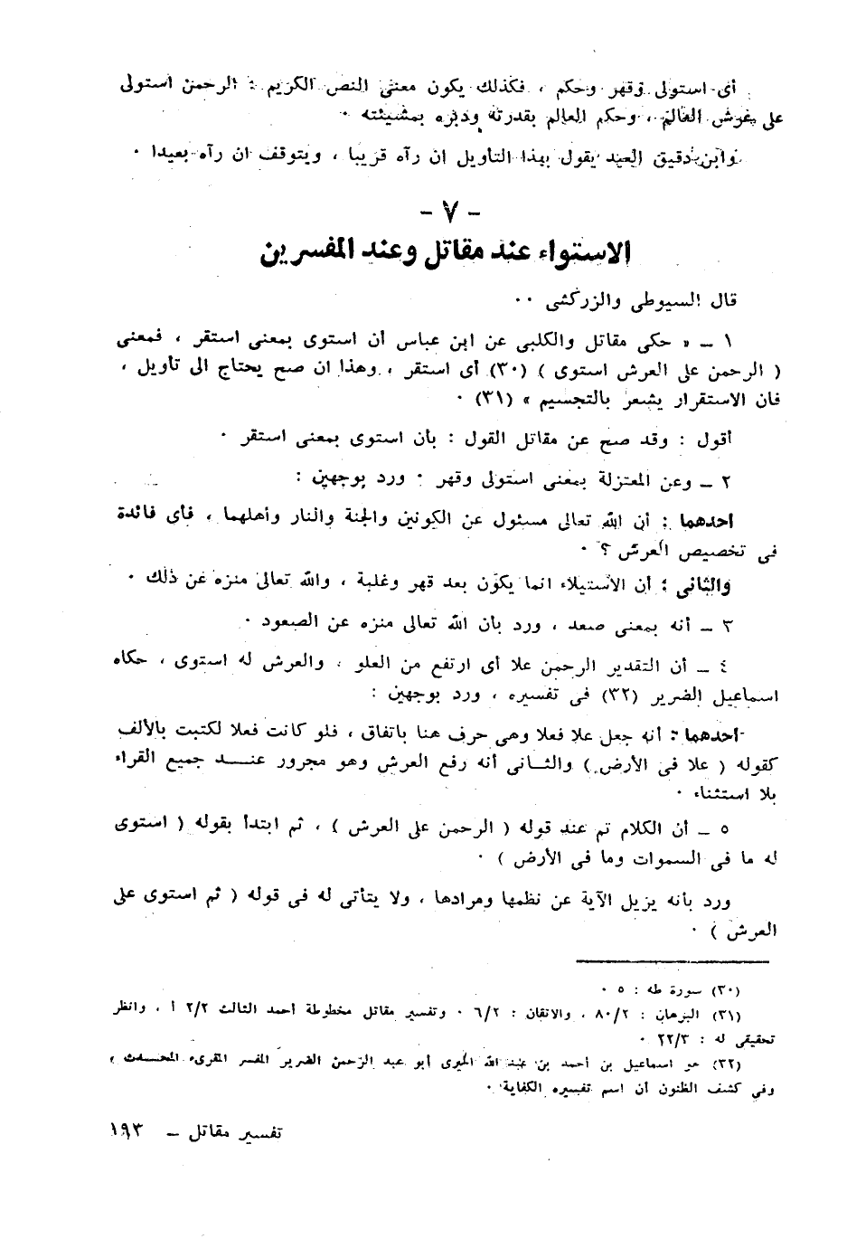 - 7- الاستواء عند مقاتل وعند المفسرين