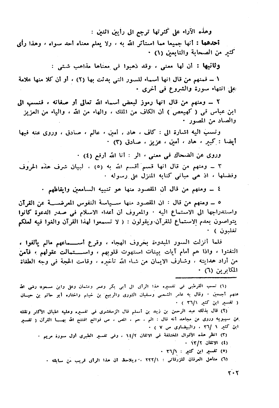 (1) نسب القرطبي فى تفسيره هذا الرأي الى ابى بكر وعمر وعثمان وعلى وابن مسعود رضى الله عنهم أجمعين. وقال به عامر الشعبي وسفيان الثوري والربيع بن خيثم واختاره ابو حاتم بن حيان (تفسير ابن كثير 1/ 36) .