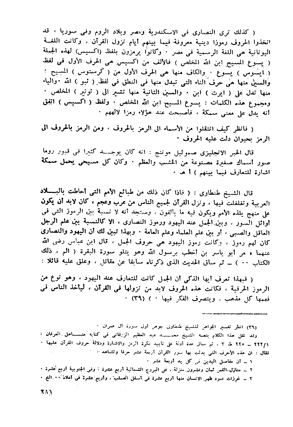 (39) انظر تفسير الجواهر للشيخ طنطاوي جوهر أول سورة آل عمران.