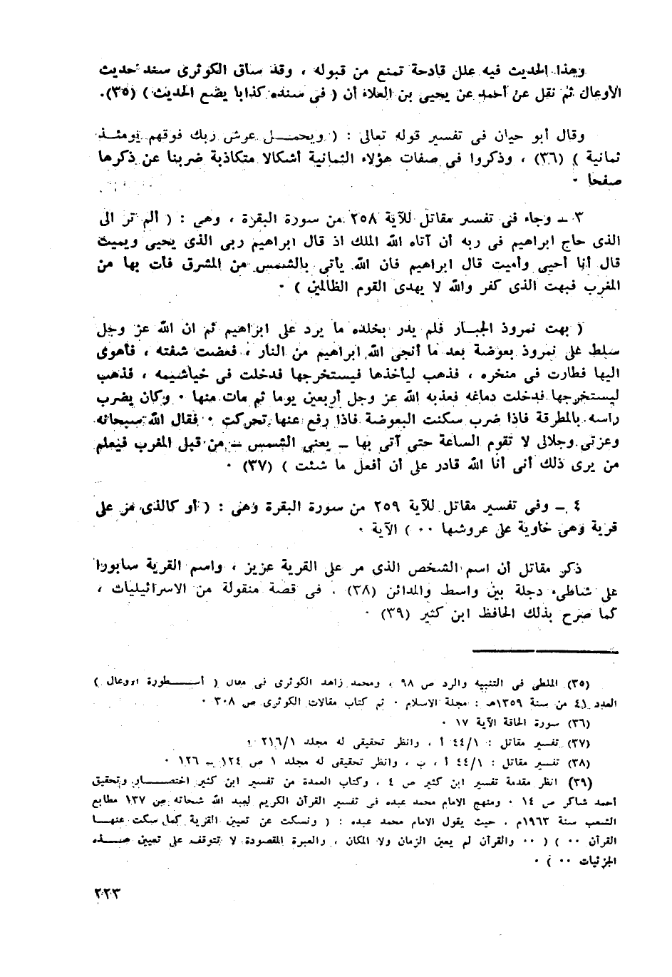 (35) الملطي فى التنبيه والرد ص 98، ومحمد زاهد الكوثرى فى معال (اسطورة الأوعال) العدد 41 من سنة 1359 هـ: مجلة الإسلام. ثم كتاب مقالات الكوثرى ص 308.