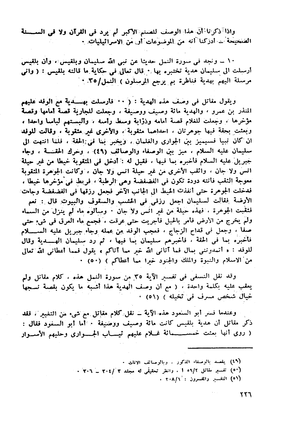وقد نقل النسفي فى تفسير الآية 35 من سورة النمل هذه، كلام مقاتل ولم يعقب عليه بكلمة واحدة، (مع ان وصف الهدية هذا أشبه ما يكون بقصة نسجها خيال شخص مسرف فى تخيله) «51» .