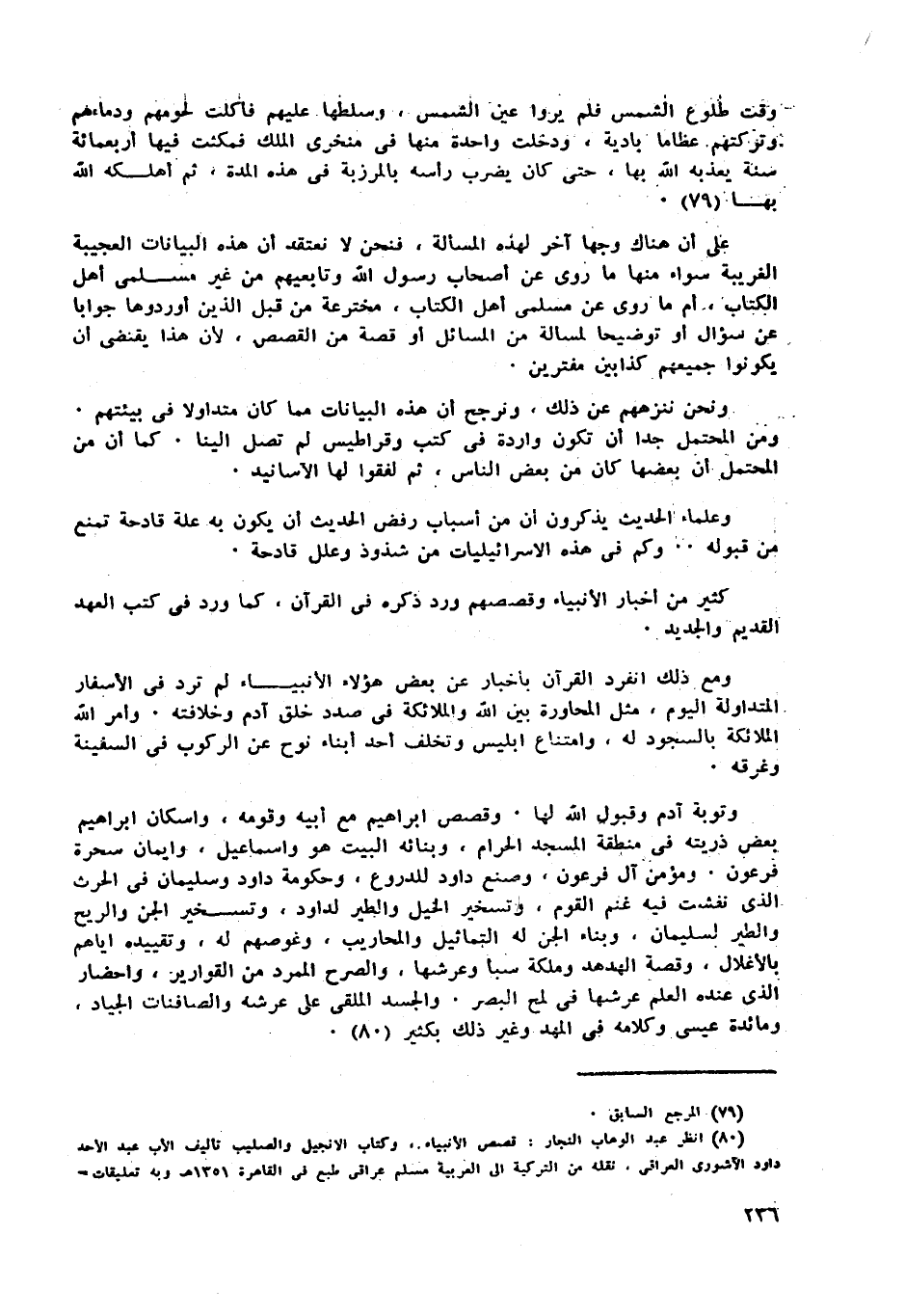 (80) انظر عبد الوهاب النجار: قصص الأنبياء، وكتاب الإنجيل والصليب تأليف الأب عبد الأحد داود الآشورى العراقي، نقله من التركية الى العربية مسلم عراقي طبع فى القاهرة 1351 هـ وبه تعليقات-