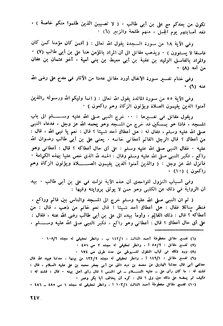 وفى ختام تفسير سورة الأنفال أورد مقاتل عددا من الآثار فى مدح على رضى الله عنه «9» .