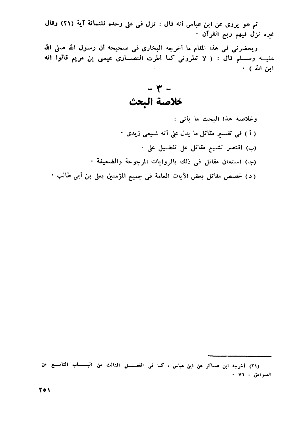 (21) أخرجه ابن عساكر عن ابن عباس، كما فى الفصل الثالث من الباب التاسع من الصواعق: 76.