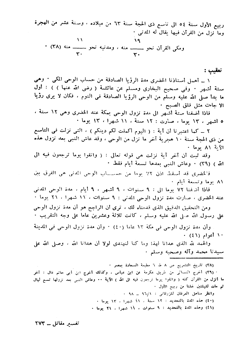 فالخضرى قد أسقط اذن 72 يوما من حساب الوحى المدني هي الفرق بين 81 يوما وتسعة ايام.