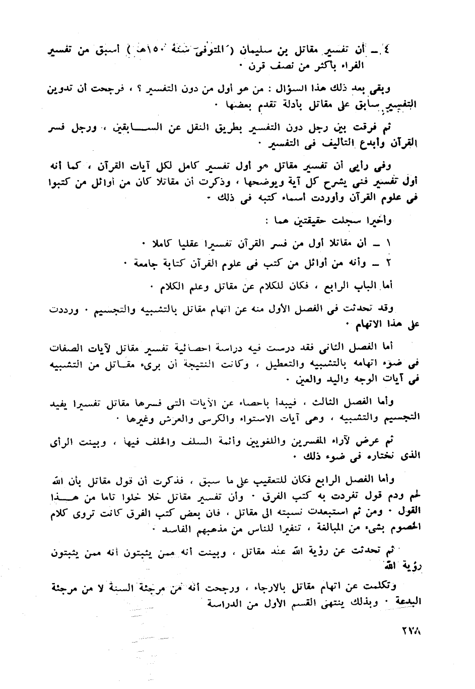 وقد تحدثت فى الفصل الاول منه عن اتهام مقاتل بالتشبيه والتجسيم. ورددت على هذا الاتهام.