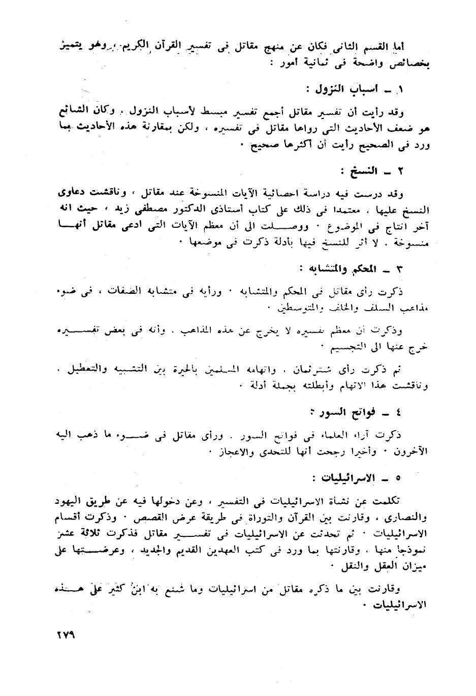 ذكرت راى مقاتل فى المحكم والمتشابه. ورأيه فى متشابه الصفات، فى ضوء مذاهب السلف والخلف والمتوسطين.