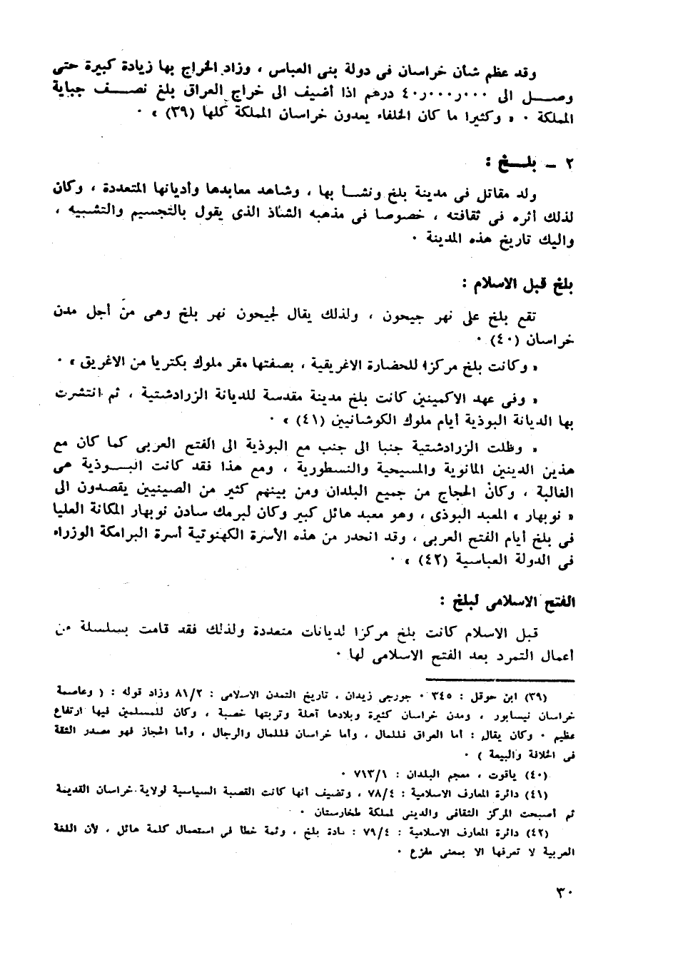 (41) دائرة المعارف الاسلامية: 4/ 78، وتضيف أنها كانت القصبة السياسية لولاية خراسان القديمة ثم أصبحت المركز الثقافى والديني لمملكة طخارستان.