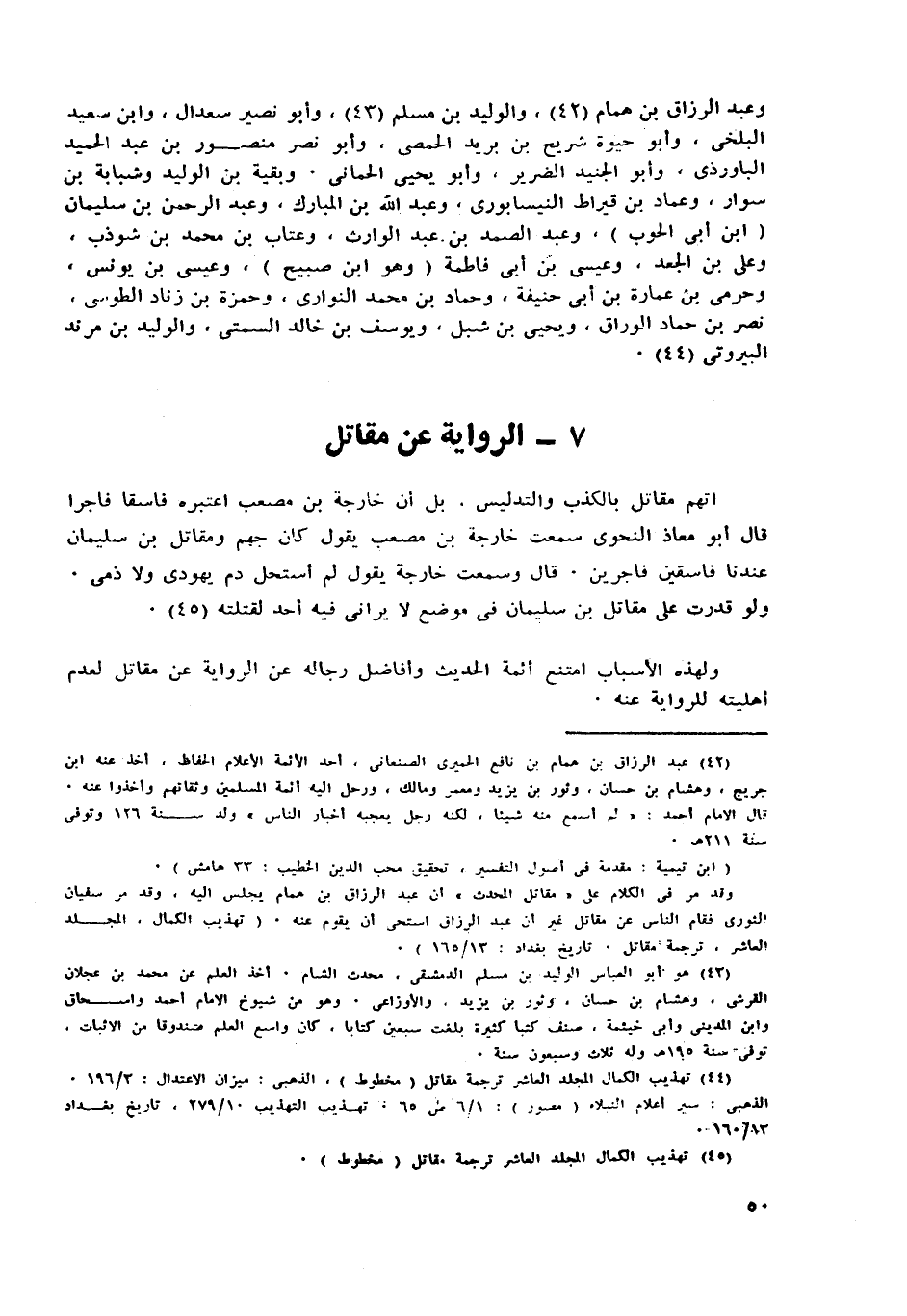 (44) تهذيب الكمال المجلد العاشر ترجمة مقاتل (مخطوط) ، الذهبي: ميزان الاعتدال: 3/ 196.