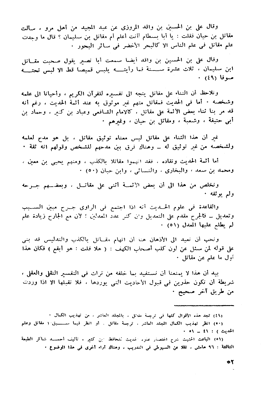 (50) انظر تهذيب الكمال المجلد العاشر، ترجمة مقاتل. أو انظر فيما سبق (مقاتل وعلم الحديث) : 41- 51.