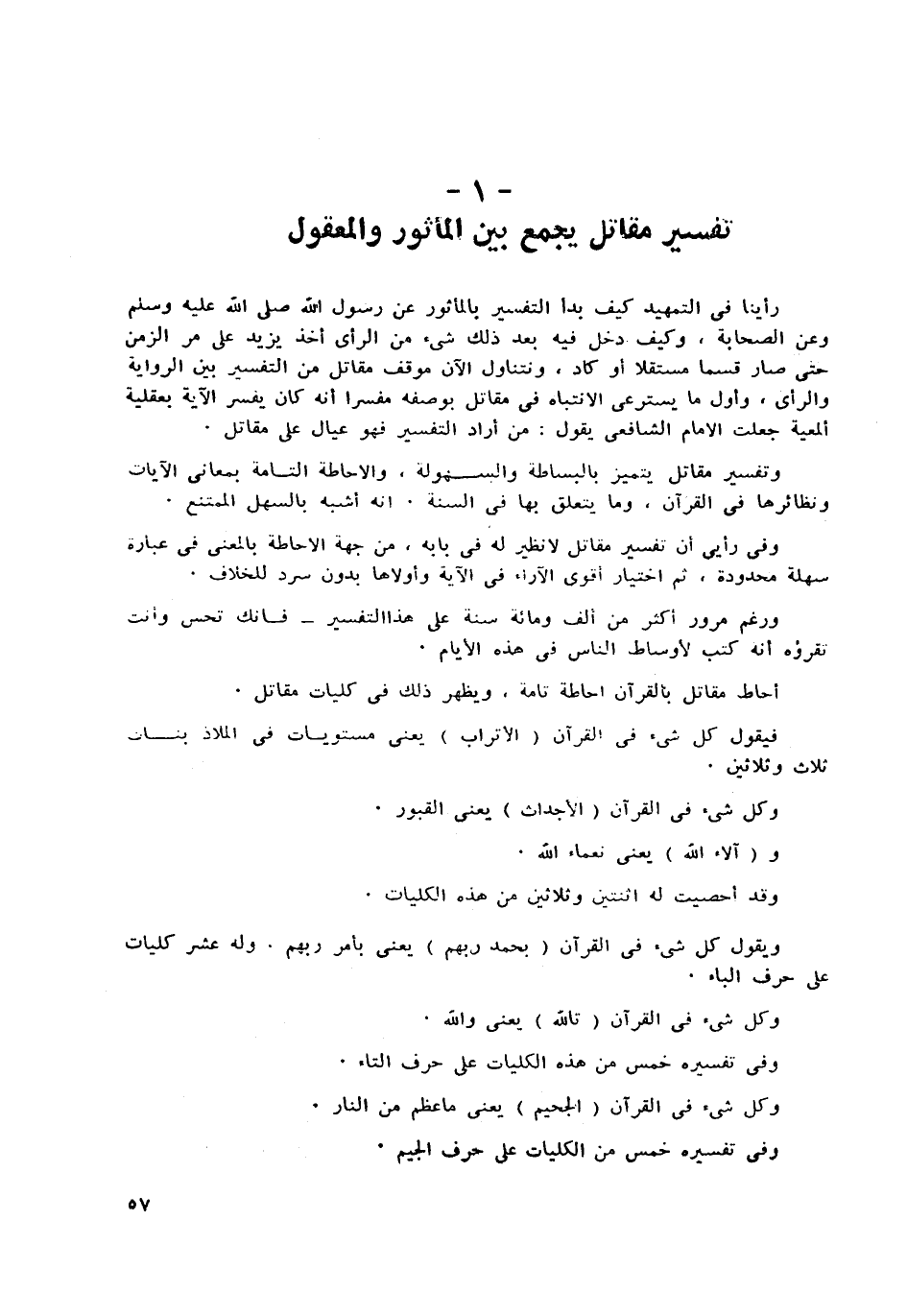 - 1- تفسير مقاتل يجمع بين المأثور والمعقول