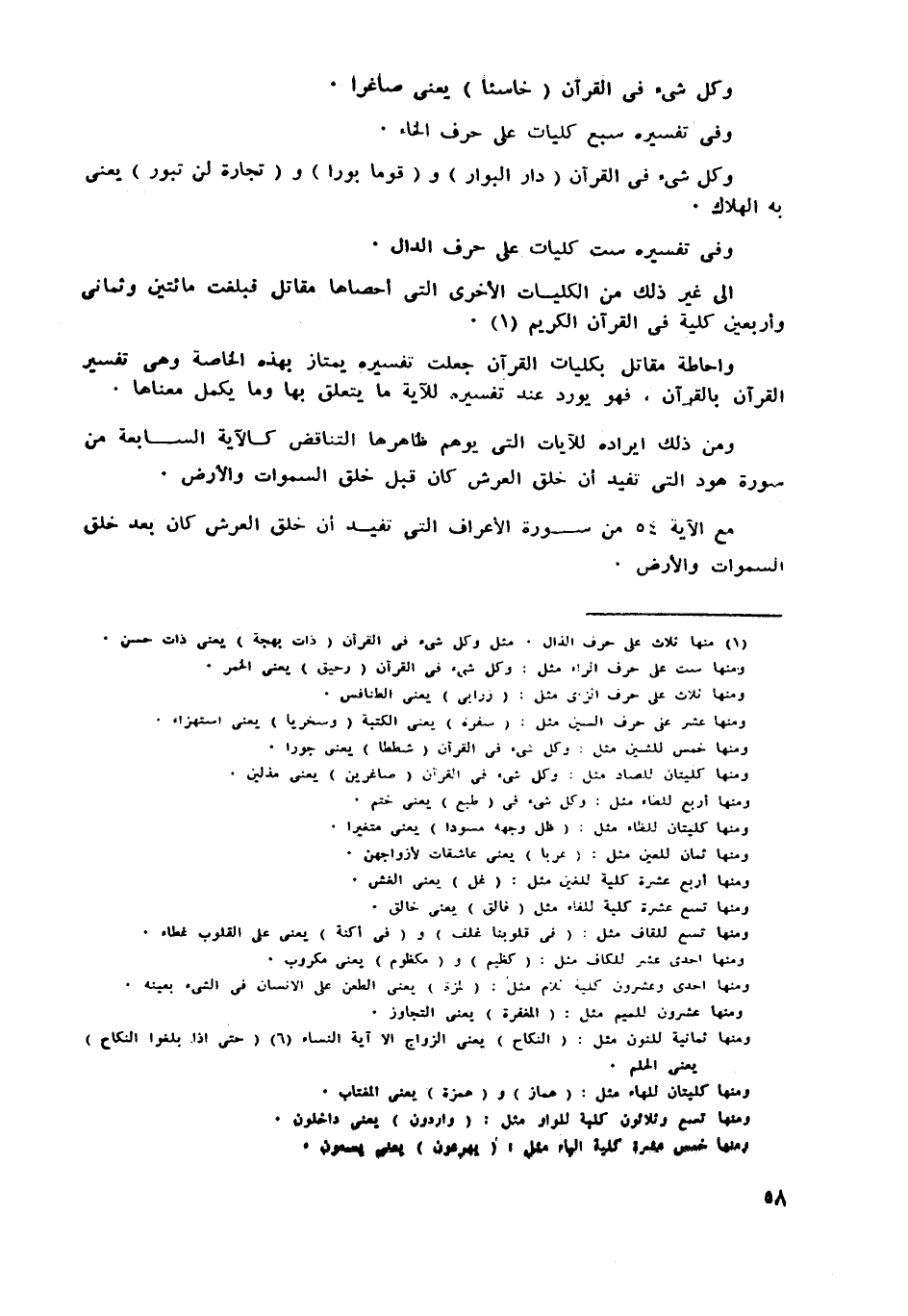 الى غير ذلك من الكليات الاخرى التي أحصاها مقاتل فبلغت مائتين وثماني وأربعين كلية فى القرآن الكريم «1» .