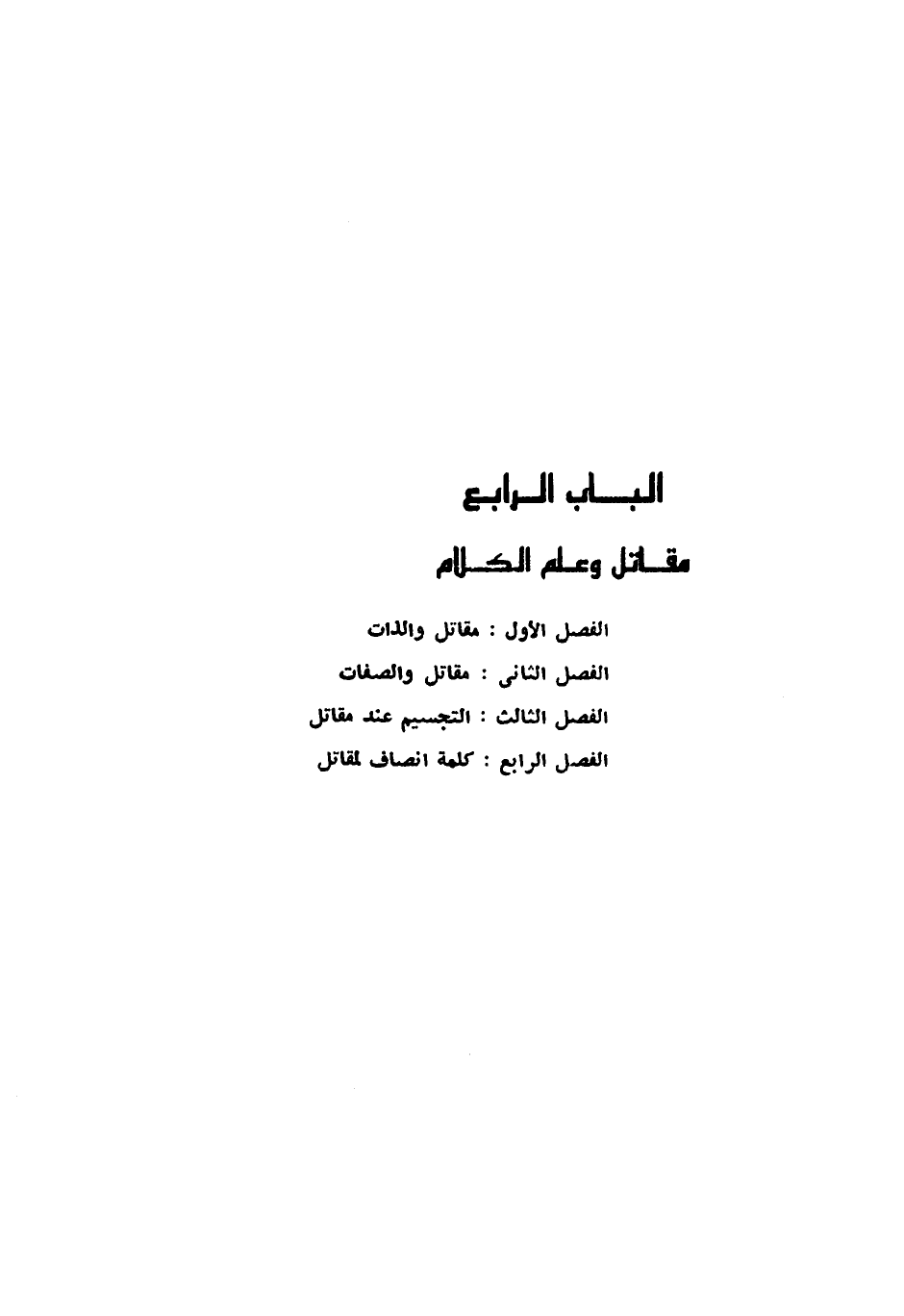 الفصل الاول: مقاتل والذات الفصل الثاني: مقاتل والصفات الفصل الثالث: التجسيم عند مقاتل الفصل الرابع: كلمة انصاف لمقاتل