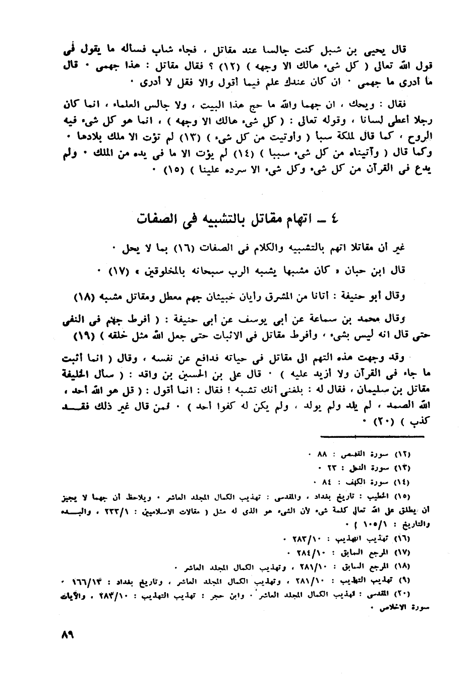 4- اتهام مقاتل بالتشبيه فى الصفات