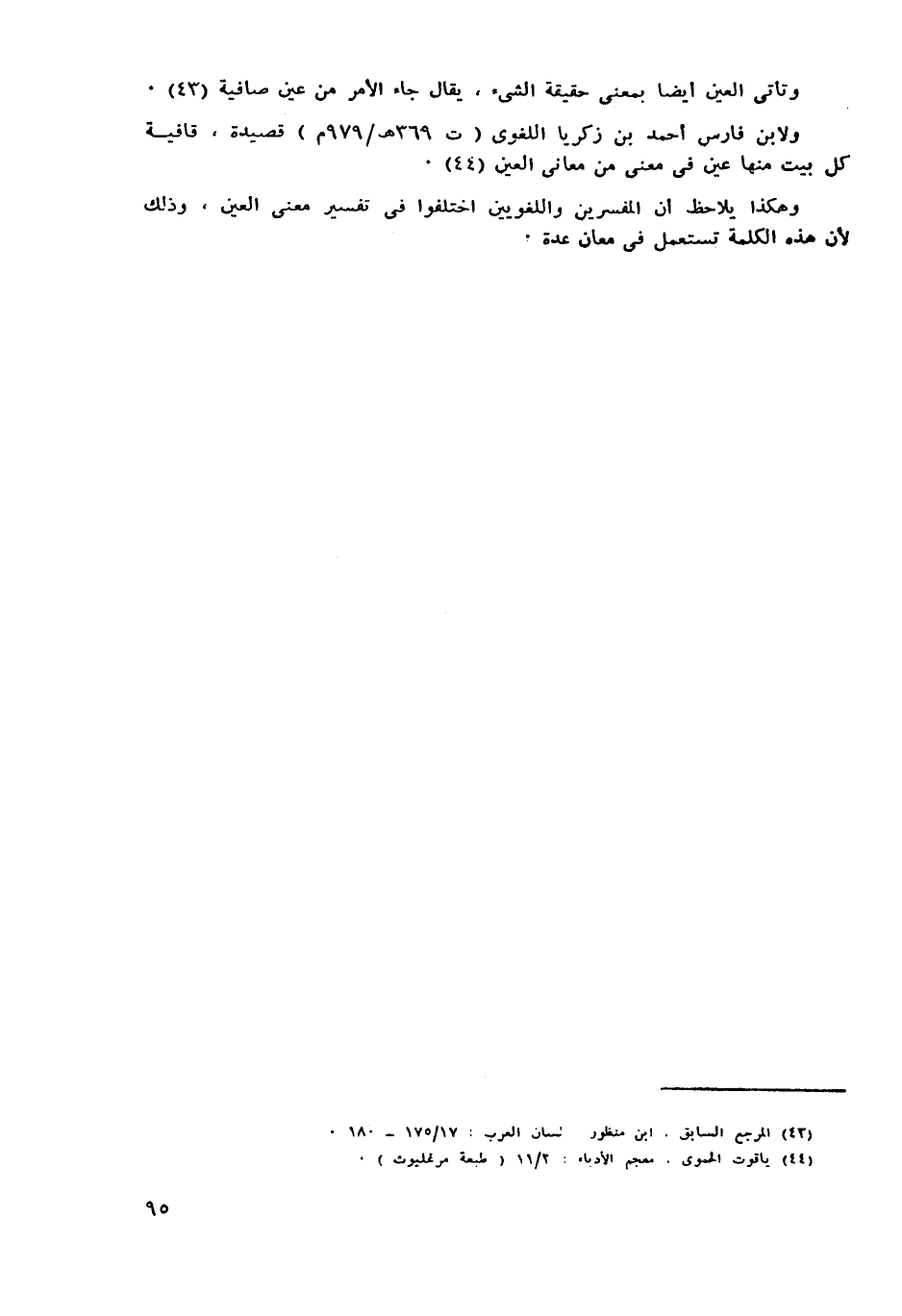 وهكذا يلاحظ ان المفسرين واللغويين اختلفوا فى تفسير معنى العين، وذلك لان هذه الكلمة تستعمل فى معان عدة.