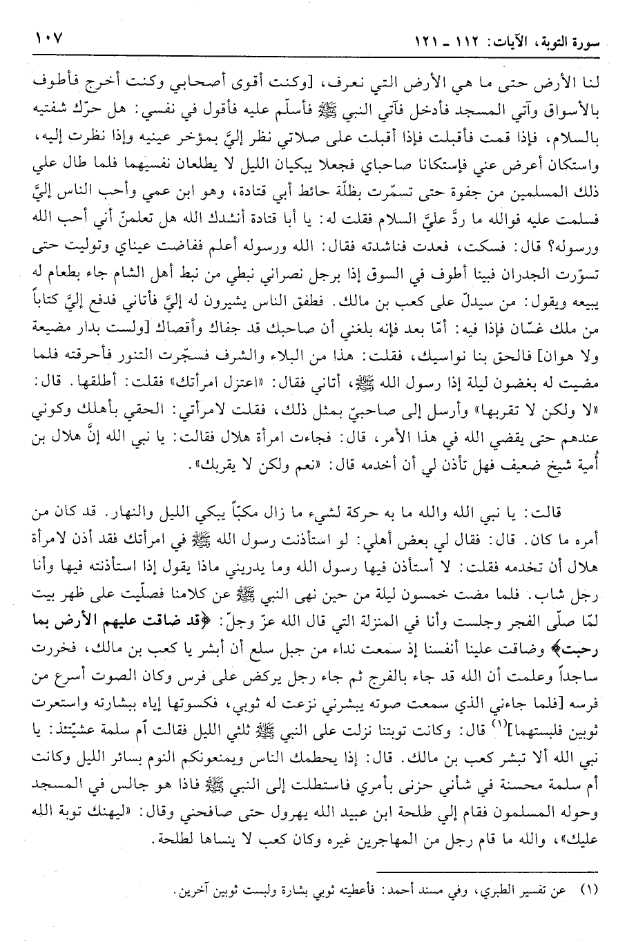 (1) عن تفسير الطبري، وفي مسند أحمد: فأعطيته ثوبي بشارة ولبست ثوبين آخرين.