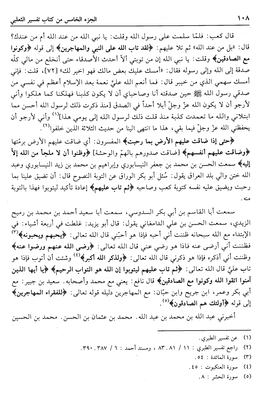 كتاب تفسير الثعلبي = الكشف والبيان عن تفسير القرآن (اسم الجزء: 5)