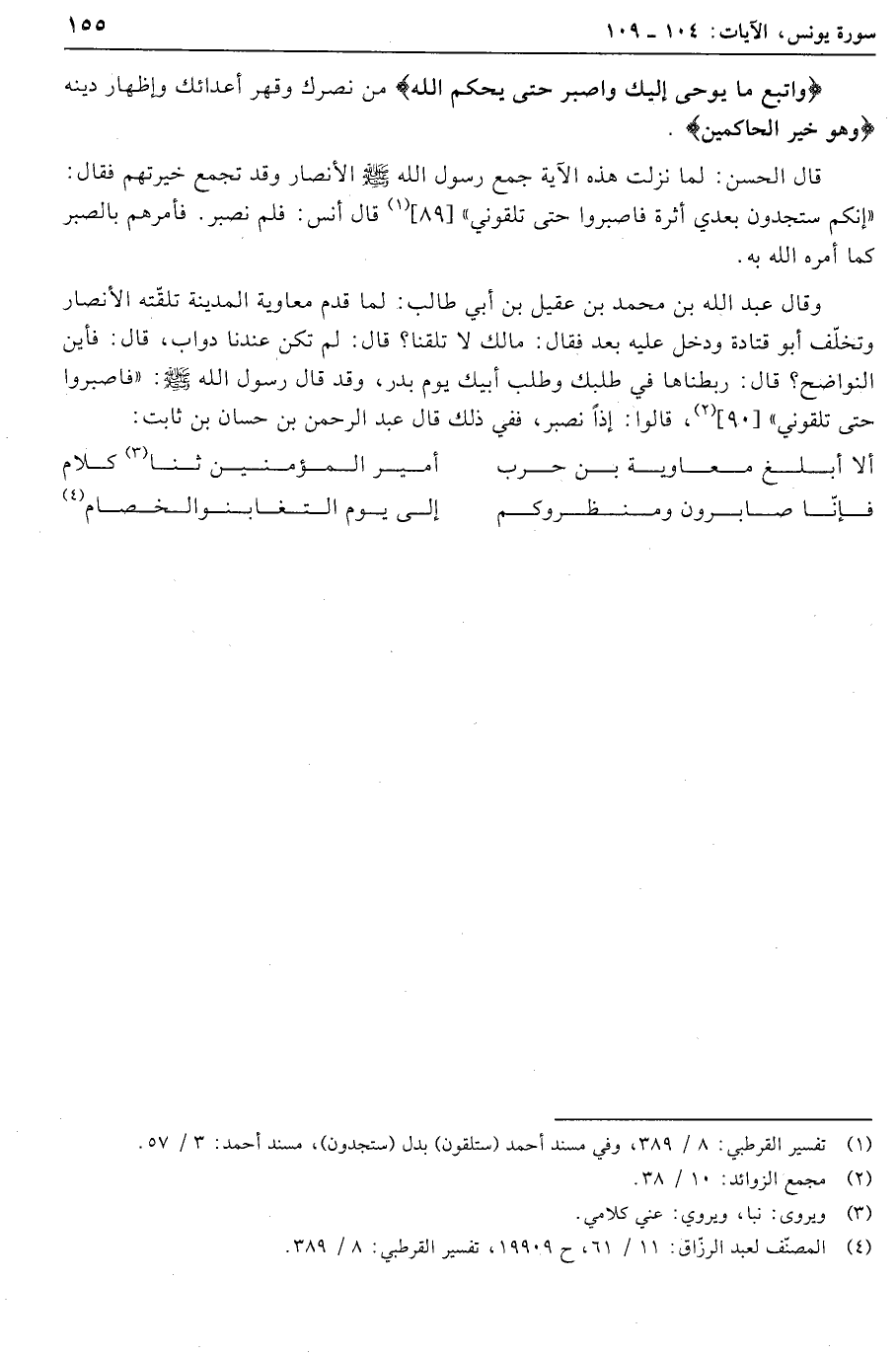 (4) المصنّف لعبد الرزّاق: 11/ 61، ح 19909، تفسير القرطبي: 8/ 389.