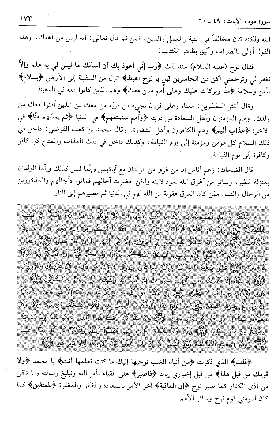 تِلْكَ مِنْ أَنْباءِ الْغَيْبِ نُوحِيها إِلَيْكَ ما كُنْتَ تَعْلَمُها أَنْتَ وَلا قَوْمُكَ مِنْ قَبْلِ هذا فَاصْبِرْ إِنَّ الْعاقِبَةَ لِلْمُتَّقِينَ (49) وَإِلى عادٍ أَخاهُمْ هُوداً قالَ يا قَوْمِ اعْبُدُوا اللَّهَ ما لَكُمْ مِنْ إِلهٍ غَيْرُهُ إِنْ أَنْتُمْ إِلاَّ مُفْتَرُونَ (50) يا قَوْمِ لا أَسْئَلُكُمْ عَلَيْهِ أَجْراً إِنْ أَجْرِيَ إِلاَّ عَلَى الَّذِي فَطَرَنِي أَفَلا تَعْقِلُونَ (51) وَيا قَوْمِ اسْتَغْفِرُوا رَبَّكُمْ ثُمَّ تُوبُوا إِلَيْهِ يُرْسِلِ السَّماءَ عَلَيْكُمْ مِدْراراً وَيَزِدْكُمْ قُوَّةً إِلى قُوَّتِكُمْ وَلا تَتَوَلَّوْا مُجْرِمِينَ (52) قالُوا يا هُودُ ما جِئْتَنا بِبَيِّنَةٍ وَما نَحْنُ بِتارِكِي آلِهَتِنا عَنْ قَوْلِكَ وَما نَحْنُ لَكَ بِمُؤْمِنِينَ (53)