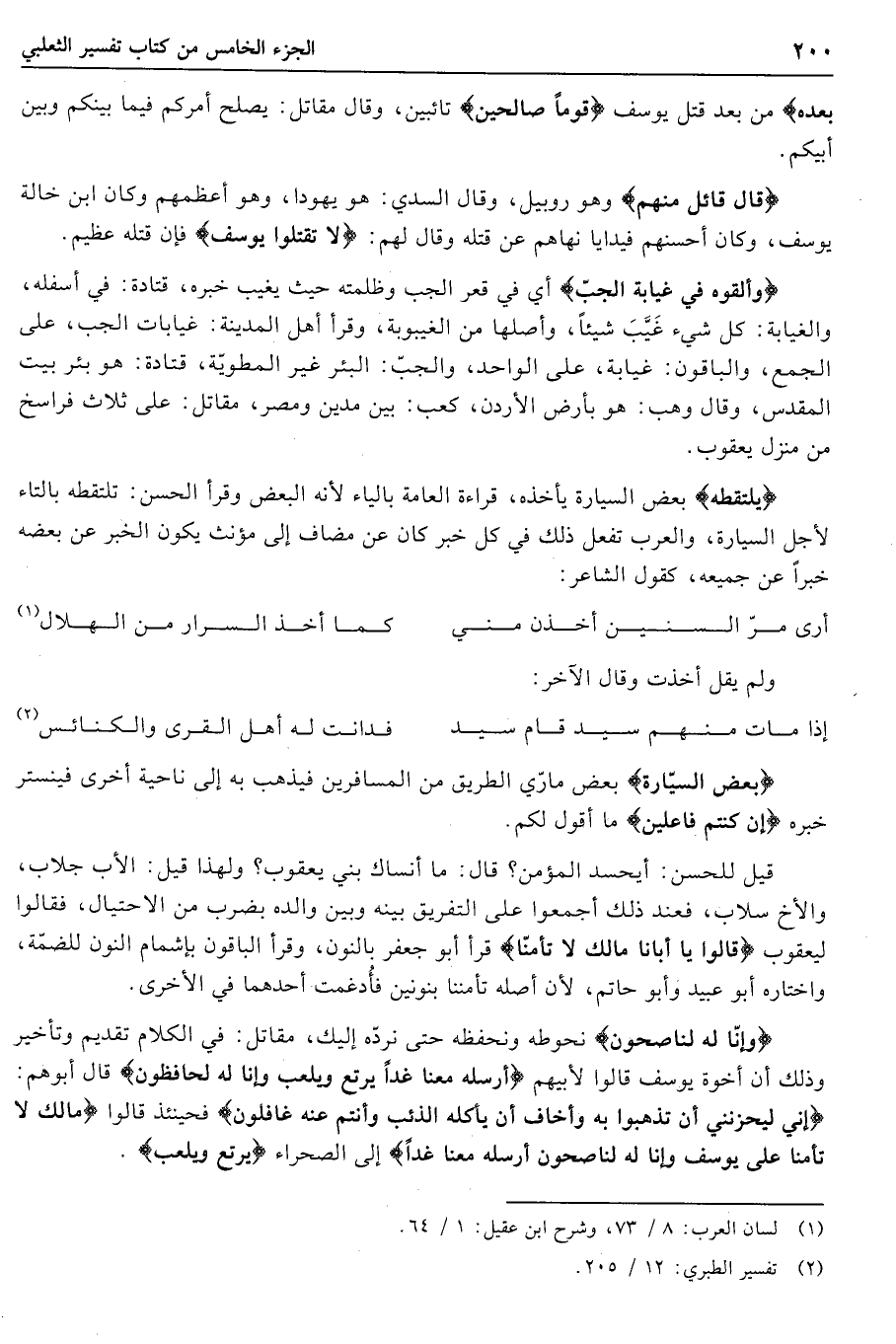 (2) تفسير الطبري: 12/ 205.