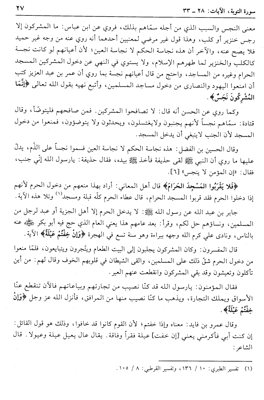 (1) تفسير الطبري: 10/ 136، وتفسير القرطبي: 8/ 105.