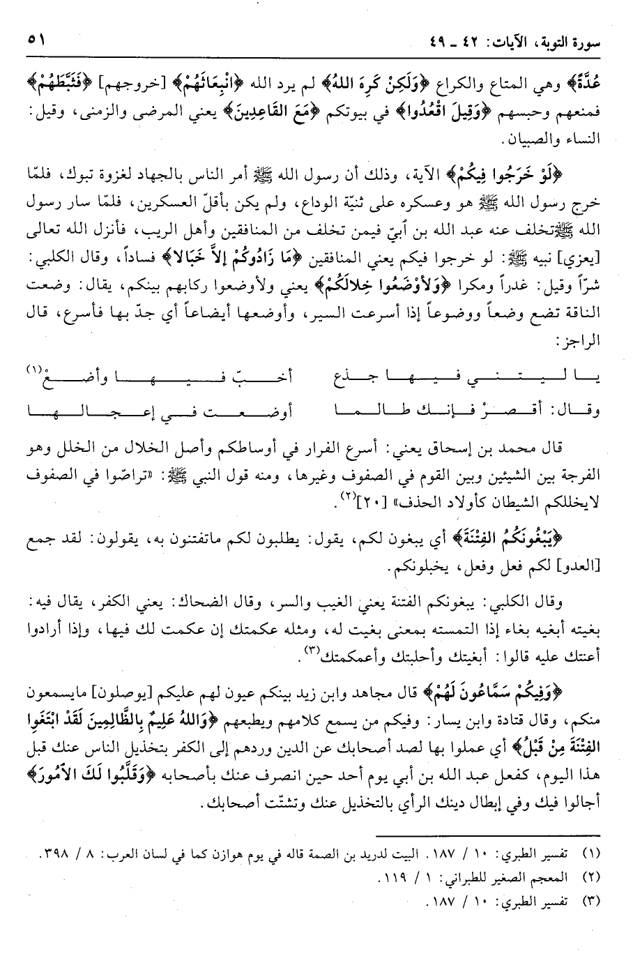 وَفِيكُمْ سَمَّاعُونَ لَهُمْ قال مجاهد وابن زيد بينكم عيون لهم عليكم [يوصلون] ما يسمعون منكم، وقال قتادة وابن يسار: وفيكم من يسمع كلامهم ويطبعهم وَاللَّهُ عَلِيمٌ بِالظَّالِمِينَ لَقَدِ ابْتَغَوُا الْفِتْنَةَ مِنْ قَبْلُ أي عملوا بها لصد أصحابك عن الدين وردهم إلى الكفر بتخذيل الناس عنك قبل هذا اليوم، كفعل عبد الله بن أبي يوم أحد حين انصرف عنك بأصحابه وَقَلَّبُوا لَكَ الْأُمُورَ أجالوا فيك وفي إبطال دينك الرأي بالتخذيل عنك وتشتّت أصحابك.