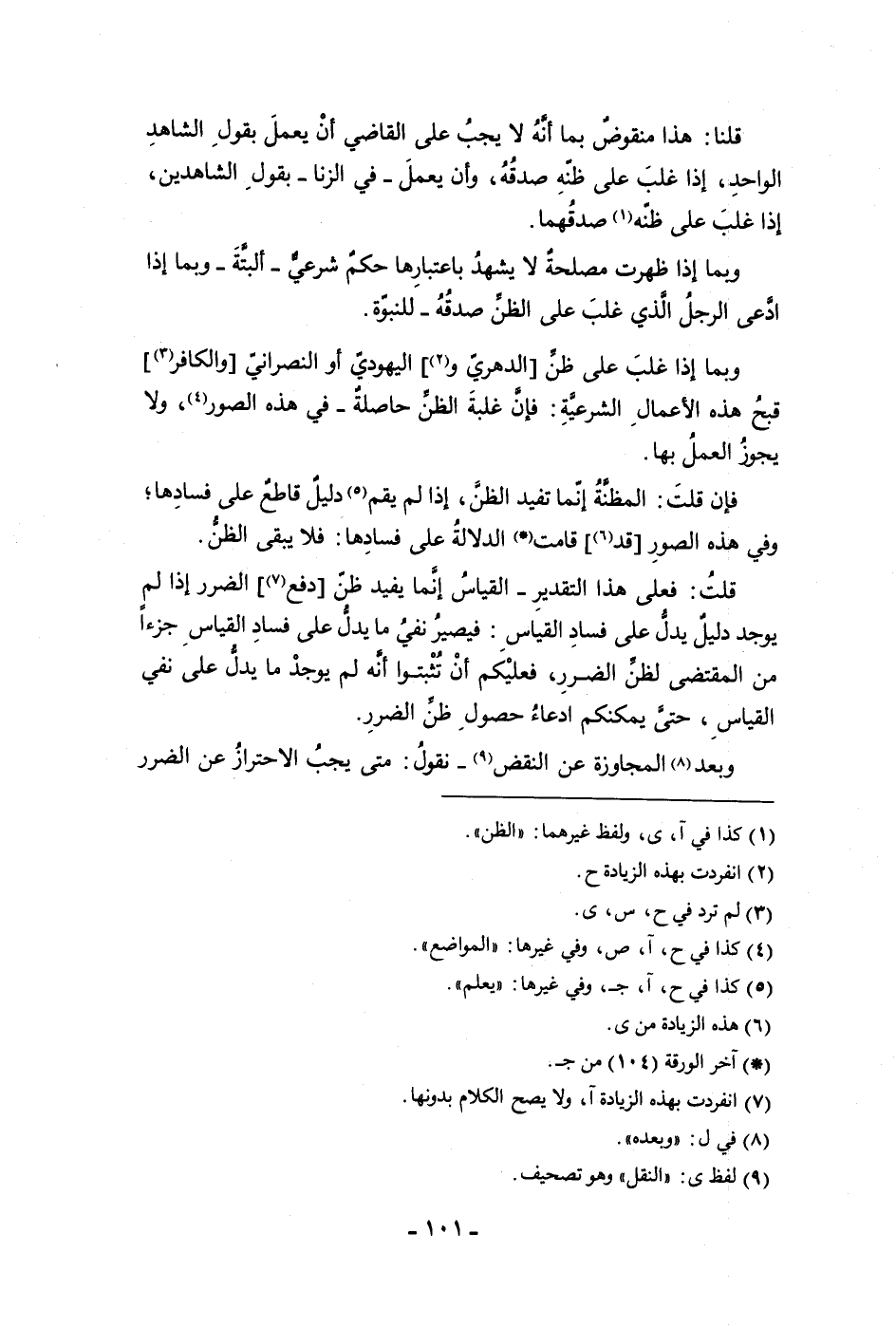 قلنا هذا منقوض بما أنه لا يجب على القاضي أن يعمل بقول الشاهد الواحد إذا غلب على ظنه صدقه وأن يعمل في الزنا بقول الشاهدين إذا غلب على ظنه صدقهما وبما إذا ظهرت مصلحة لا يشهد باعتبارها حكم شرعي ألبتة وبما إذا ادعى الرجل الذي غلب على الظن صدقه للنبوة وبما إذا غلب على ظن الدهرى واليهودى أو النصراني والكافر قبح هذه الأعمال الشرعية فإن غلبة الظن حاصلة في هذه الصور ولا يجوز العمل بها فإن قلت المظنة إنما تفيد الظن إذا لم يقم دليل قاطع على فسادها وفي هذه الصور قد قامت الدلالة على فسادها فلا يبقى الظن قلت فعلى هذا التقدير القياس إنما يفيد ظن دفع الضرر إذا لم يوجد دليل يدل على فساد القياس فيصير نفى ما يدل على فساد القياس جزءا من المقتضى لظن الضرر فعليكم أن تثبتوا أنه لم يوجد ما يدل على نفى القياس حتى يمكنكم ادعاء حصول ظن الضرر وبعد المجاوزة عن النقض نقول متى يجب الاحتراز عن الضرر