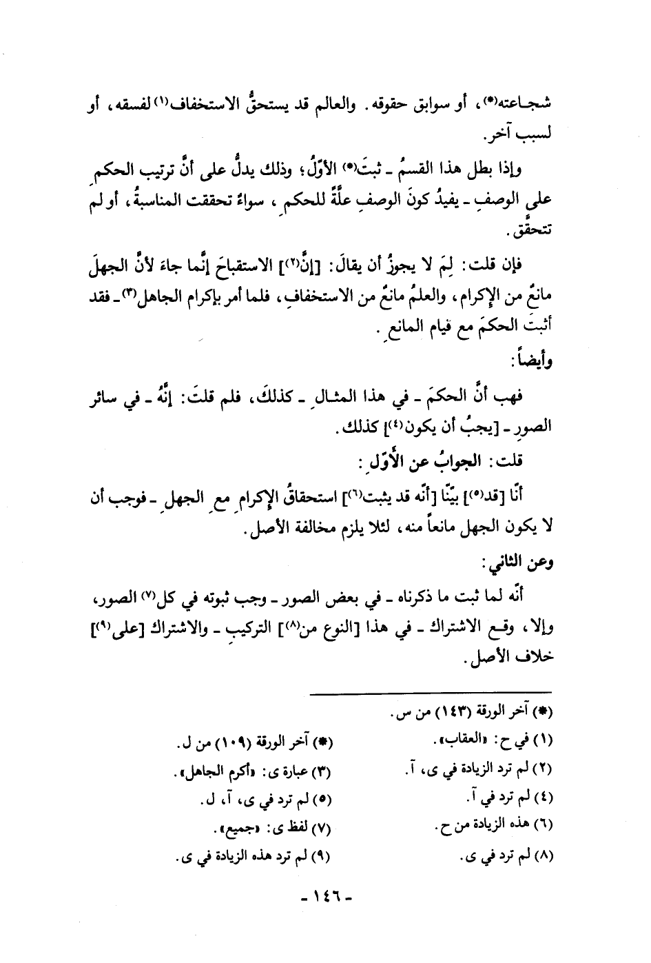 شجاعته أو سوابق حقوقه والعالم قد يستحق الاستخفاف لفسقه أو لسبب آخر وإذا بطل هذا القسم ثبت الأول وذلك يدل على أن ترتيب الحكم على الوصف يفيد كون الوصف علة الحكم سواء تحققت المناسبة أو لم تتحقق فإن قلت لم لا يجوز أن يقال إن الاستقباح إنما جاء لأن الجهل مانع من الإكرام والعلم مانع من الاستخفاف فلما أمر بإكرام الجاهل فقد أثبت الحكم مع قيام المانع وأيضا فهب أن الحكم في هذا المثال كذلك فلم قلت إنه في سائر الصور يجب أن يكون كذلك قلت الجواب عن الأول أنا قد بينا أنه قد يثبت استحقاق الإكرام مع الجهل فوجب أن