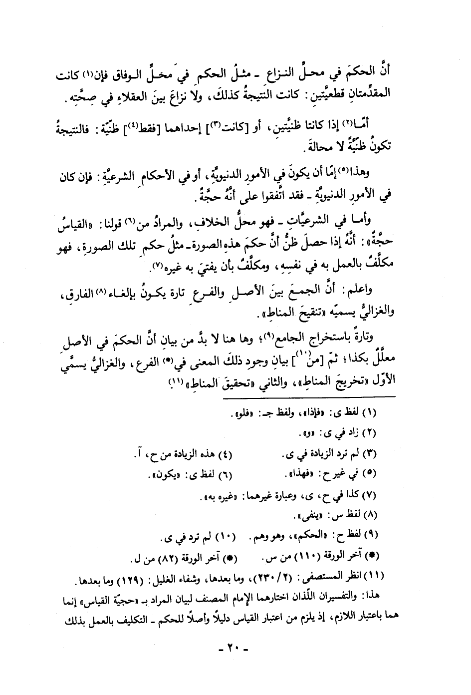 أن الحكم في محل النزاع مثل الحكم في محل الوفاق فإن كانت المقدمتان قطعيتين كانت النتيجة كذلك ولا نزاع بين العقلاء في صحته أما إذا كانتا ظنيتين أو كانت إحداهما فقط ظنية فالنتيجة تكون ظنية لا محالة وهذا إما أن يكون في الأمور الدنيوية أو في الأحكام الشرعية فإن كان في الأمور الدنيوية فقد اتفقوا على أنه حجة وأما في الشرعيات فهو محل الخلاف والمراد من قولنا القياس حجة أنه إذا حصل ظن أن حكم هذه الصورة مثل حكم تلك الصورة فهو مكلف بالعمل به في نفسه ومكلف بأن يفتى به غيره واعلم أن الجمع بين الأصل والفرع تارة يكون بإلغاء الفارق والغزالي يسميه تنقيح المناط وتارة باستخراج الجامع وهاهنا لا بد من بيان أن الحكم في الأصل معلل بكذا ثم من بيان وجود ذلك المعنى في الفرع والغزالي يسمى الأول تخريج المناط والثاني تحقيق المناط