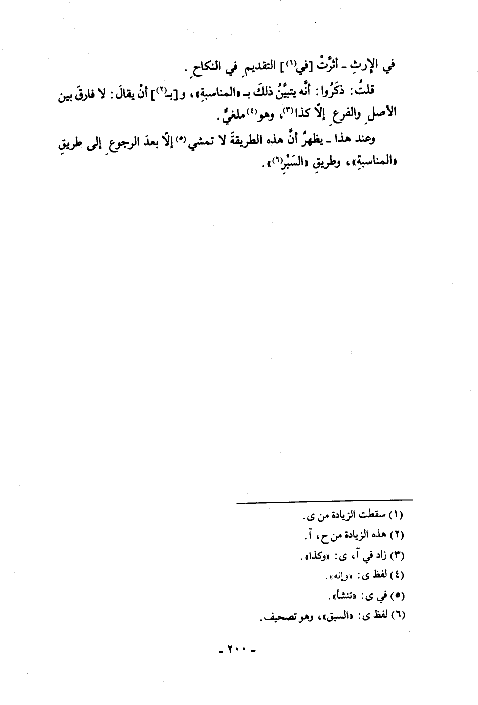 في الإرث أثرت في التقديم في النكاح قلت ذكروا أنه يتبين ذلك بالمناسبة وبأن يقال لا فارق بين الأصل والفرع إلا كذا وهو ملغى وعند هذا يظهر أن هذه الطريقة لا تمشى إلا بعد الرجوع إلى طريق المناسبة وطريق السبر