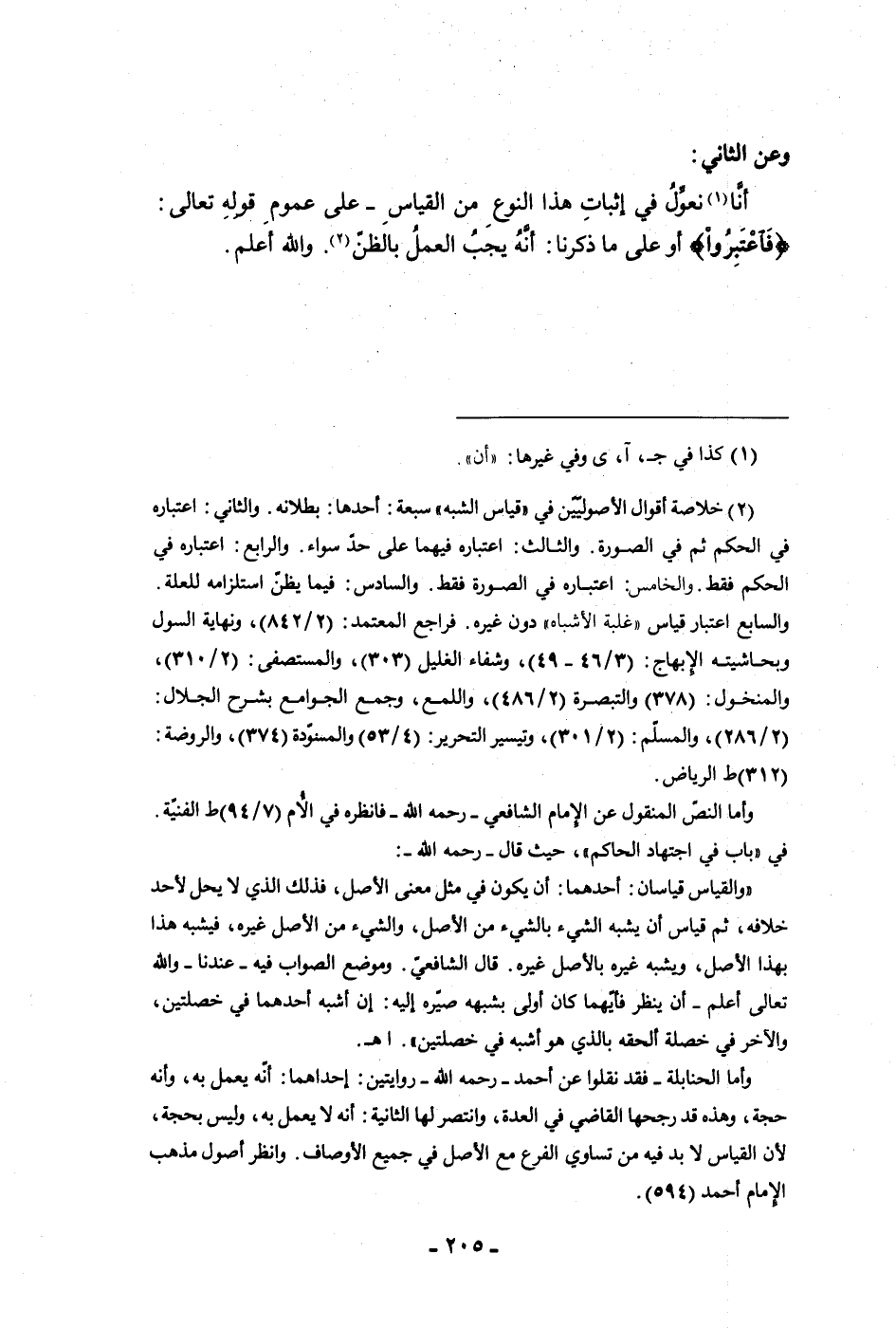وعن الثاني أنا نعول في إثبات هذا النوع من القياس على عموم قوله تعالى فاعتبروا أو على ما ذكرنا أنه يجب العمل بالظن والله اعلم