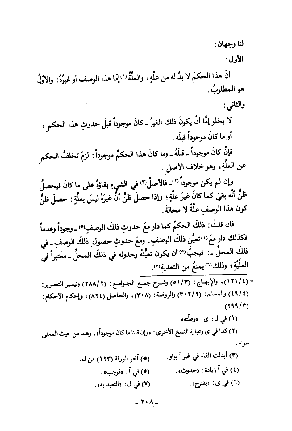 لنا وجهان الأول أن هذا الحكم لا بد له من علة والعلة إما هذا الوصف أو غيره والأول هو المطلوب والثاني لا يخلو إما أن يكون ذلك الغير كان موجودا قبل حدوث هذا الحكم أو ما كان موجودا قبله فإن كان موجودا قبله وما كان هذا الحكم موجودا لزم تخلف الحكم عن العلة وهو خلاف الأصل وإن لم يكن موجودا فالأصل في الشئ بقاؤه على ما كان فيحصل ظن أنه بقي كما كان غير علة وإذا حصل ظن أن غيره ليس بعلة حصل ظن كون هذا الوصف علة لا محالة فإن قلت ذلك الحكم كما دار مع حدوث ذلك الوصف وجودا وعدما فكذلك دار مع تعين ذلك الوصف ومع حدوث حصول ذلك الوصف في ذلك المحل فيجب أن يكون تعينه وحدوثه في ذلك المحل معتبرا في العلية وذلك يمنع من التعدية