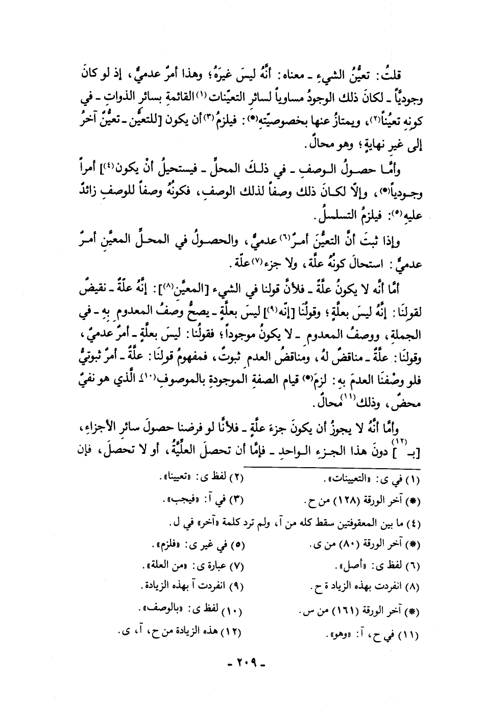 قلت تعين الشئ معناه أنه ليس غيره وهذا أمر عدمي إذ لو كان وجوديا لكان ذلك الوجود مساويا لسائر التعينات القائمة بسائر الذوات في كونه تعينا ويمتاز عنها بخصوصيته فيلزم أن يكون للتعيين تعين آخر