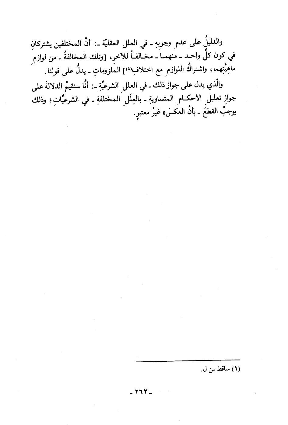 ماهيتهما واشتراك اللوازم مع اختلاف الملزومات يدل على قولنا والذي يدل على جواز ذلك في العلل الشرعية أنا سنقيم الدلالة على جواز تعليل الأحكام المتساوية بالعلل المختلفة في الشرعيات وذلك يوجب القطع بأن العكس غير معتبر