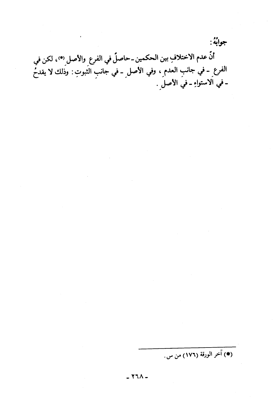 جوابه أن عدم الاختلاف بين الحكمين حاصل في الفرع والأصل لكن في الفرع في جانب العدم وفي الأصل في جانب الثبوت وذلك لا يقدح في الاستواء في الأصل